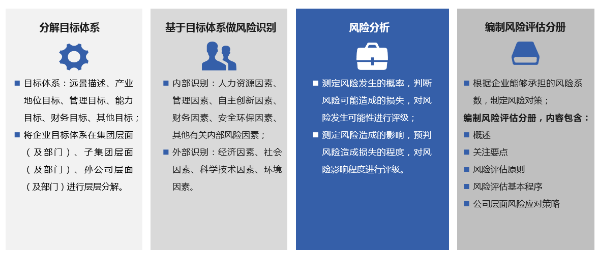 3、依據(jù)相關(guān)政策及法規(guī)要求,建立《全面風(fēng)險(xiǎn)管理體系》;