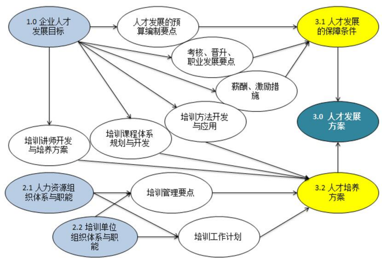 其中:培訓(xùn)管理體系包括培訓(xùn)制度、培訓(xùn)政策、管理人員培訓(xùn)職責(zé)管理、培訓(xùn)信息搜集反饋與管理、培訓(xùn)評(píng)估體系、培訓(xùn)預(yù)算及費(fèi)用管理、培訓(xùn)與績(jī)效考核管理等一系列與培訓(xùn)相關(guān)的制度。培訓(xùn)課程體系是指包括企業(yè)文化培訓(xùn)、入職培訓(xùn)、崗位培訓(xùn)、專業(yè)知識(shí)和專業(yè)技術(shù)培訓(xùn)、營銷培訓(xùn)、管理和領(lǐng)導(dǎo)技能培訓(xùn)等在內(nèi)的一整套具有本企業(yè)特色的培訓(xùn)課程。