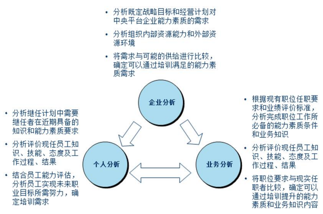 6、從企業(yè)、業(yè)務(wù)、個(gè)人三方面進(jìn)行培訓(xùn)需求分析: