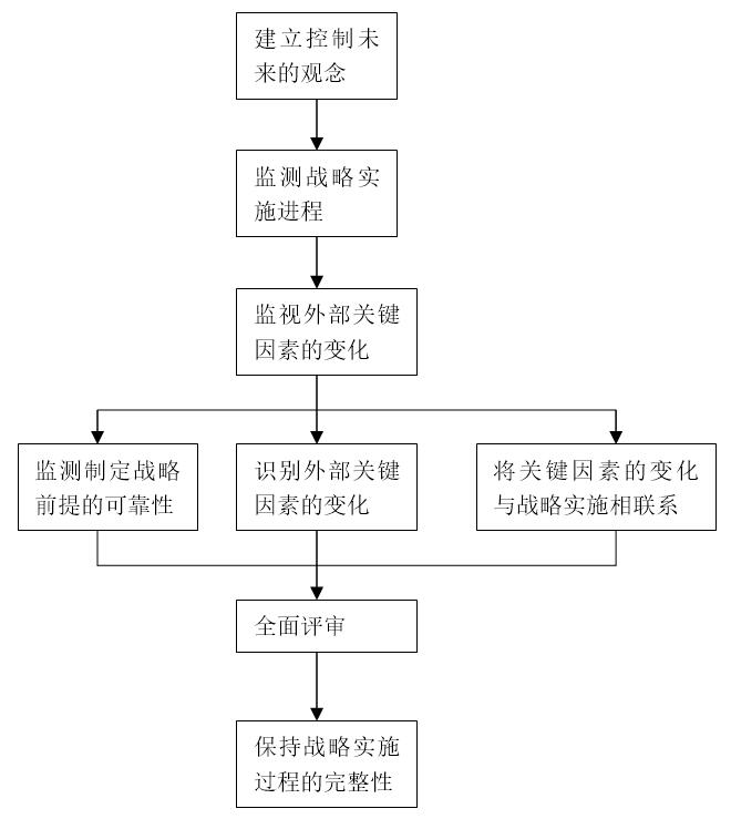 戰(zhàn)略實(shí)施控制程序的執(zhí)行是為了達(dá)到戰(zhàn)略推進(jìn)的兩個(gè)目的:一是檢查現(xiàn)行戰(zhàn)略實(shí)施的有效性;二是提供使經(jīng)營(yíng)戰(zhàn)略適應(yīng)變化環(huán)境的內(nèi)在機(jī)制。