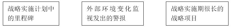 1. 戰(zhàn)略實(shí)施計(jì)劃中的里程碑。即:將整個(gè)戰(zhàn)略實(shí)施過程劃分為幾個(gè)階段,每一階段都標(biāo)志著戰(zhàn)略推進(jìn)的一個(gè)里程碑,也就是說,要對(duì)戰(zhàn)略實(shí)施計(jì)劃的每一階段進(jìn)行評(píng)審,一般在戰(zhàn)略實(shí)施開始就把階段評(píng)審時(shí)間列入計(jì)劃,這樣就可以有的放矢地收集有關(guān)信息、情報(bào)。