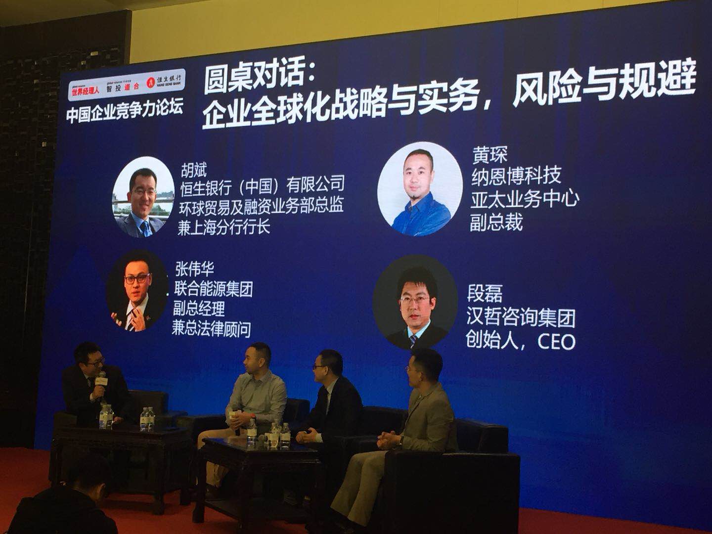 受大會邀請,漢哲咨詢首席戰(zhàn)略專家段磊博士發(fā)表了題為《全球視野,海外落地-中國民營企業(yè)全球化實踐路徑研究》的專題演講。