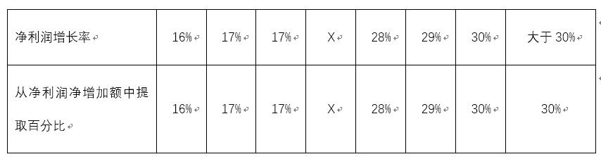 表2-1 年度股權激勵基金提取比例表