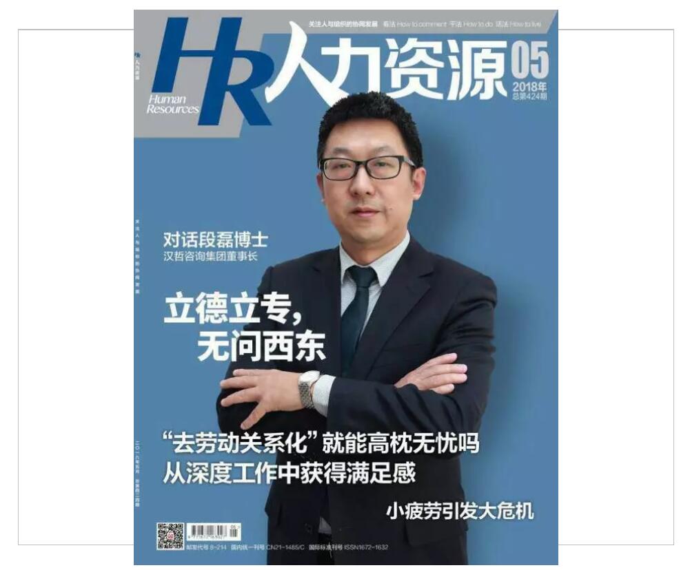 《人力資源》雜志2018年第5期(總第424期)以漢哲咨詢(股票代碼:832830)首席專家段磊博士為封面人物,刊登了題為《立德立專,無(wú)問(wèn)西東》的專題對(duì)話訪談錄。