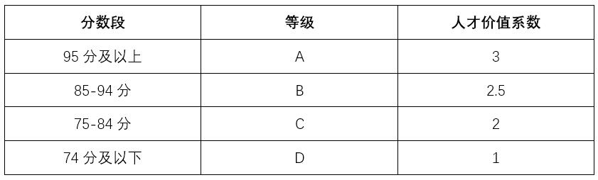 關于人才價值的評價標準,企業(yè)可以根據(jù)本企業(yè)的情況具體制定,激對象的學歷、工作能力、其工作的重要性等都可以作為評價依據(jù)。然后根據(jù)評分結果賦予其人才價值系數(shù),如表3-2: