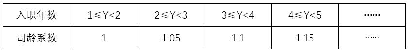司齡系數(shù)反映激勵對象已在公司工作的年限,以授予日為基準,參與計劃的激勵對象入職年數(shù)每增加1年,司齡系數(shù)增加0.05,具體如表3-4所示: