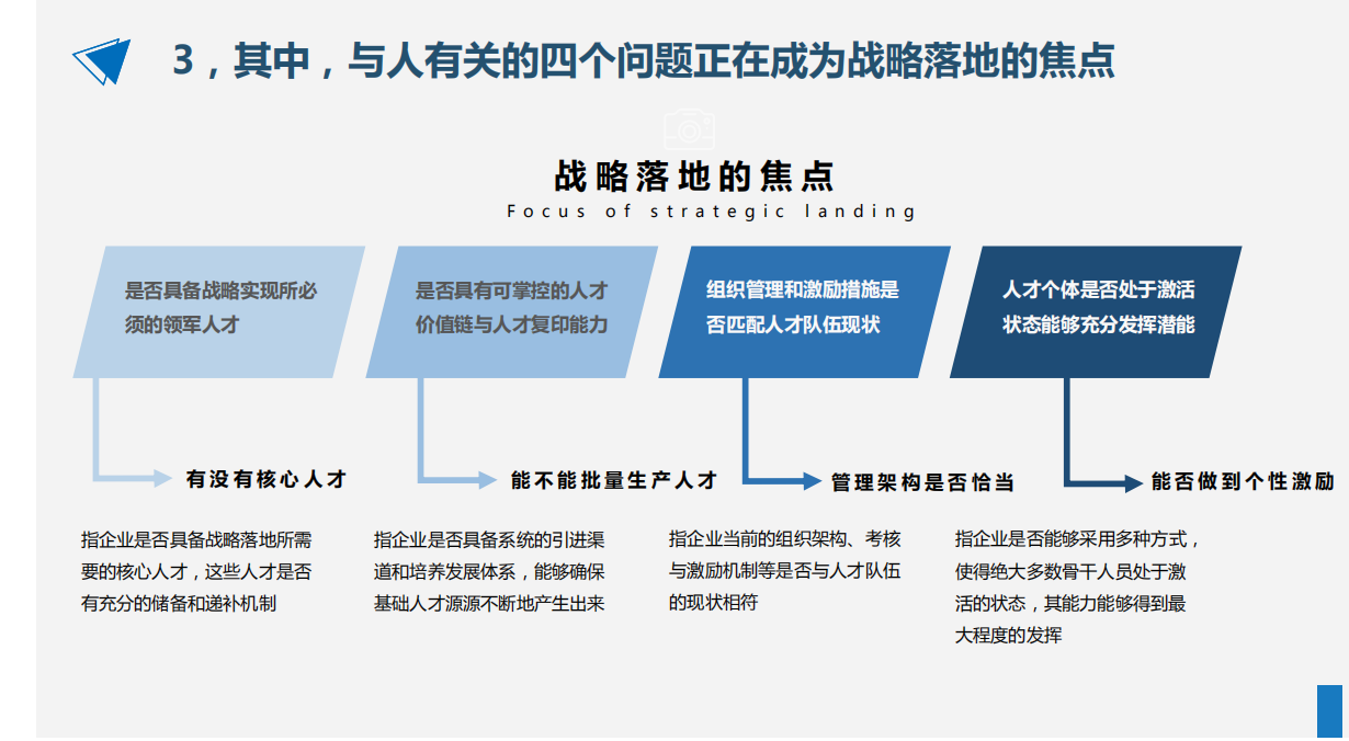 面對宏觀經(jīng)濟及環(huán)境的變化,每位企業(yè)家都要思考“政治局勢與全球化”、“經(jīng)濟結(jié)構(gòu)調(diào)整與機會風(fēng)口”、“消費升級與客戶需求把握”、“科技與企業(yè)未來”、“新一代勞動者與人才選用育留”等諸多新的戰(zhàn)略命題。而“蓋洛普路徑理論”恰如其分地闡釋了“人才”對于企業(yè)經(jīng)營的終極價值。其中,有關(guān)于人的四個問題,正在成為戰(zhàn)略落地的焦點。