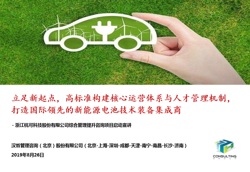 8月26日,浙江杭可科技股份有限公司(簡稱:杭可科技)流程再造與綜合管理提升咨詢項(xiàng)目啟動(dòng)大會(huì)在杭州水博園大酒店國風(fēng)廳隆重舉行。杭可科技主要領(lǐng)導(dǎo)、各部門負(fù)責(zé)人、業(yè)務(wù)骨干近兩百人參加了本次大會(huì),上市公司董事長曹驥先生為本次啟動(dòng)會(huì)致辭,漢哲咨詢董事長、首席專家段磊博士對(duì)本項(xiàng)目的設(shè)計(jì)思路、工作路線與技術(shù)方案進(jìn)行了宣講和培訓(xùn)。