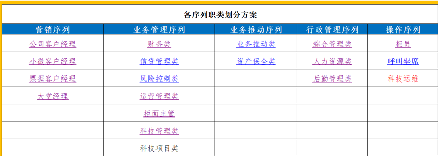 崗位序列劃分與員工發(fā)展通道設(shè)計(jì):此兩項(xiàng)內(nèi)容主要問題點(diǎn)在于薪酬模式與薪酬現(xiàn)狀的對應(yīng)性,要基于商業(yè)銀行的現(xiàn)狀及薪酬未來設(shè)想,同時(shí)借鑒其他同業(yè)的普遍做法和差異化經(jīng)驗(yàn)進(jìn)行思考和設(shè)計(jì)。