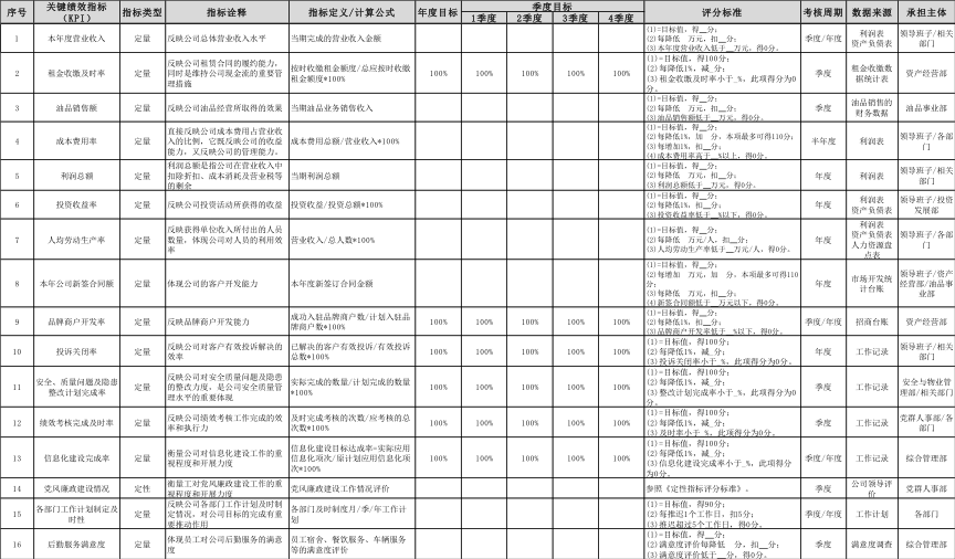 建立完整的基于公司戰(zhàn)略目標(biāo)分解的績效體系,包括高層目標(biāo)分解、中層目標(biāo)分解和基層員工考核,并與薪酬體系有機配套。