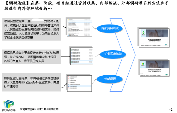 項(xiàng)目啟動(dòng)之初,通過(guò)內(nèi)部資料研究、企業(yè)深度訪談、員工調(diào)查問(wèn)卷、外部標(biāo)桿資料對(duì)比,政策研究等維度進(jìn)行全面診斷,發(fā)現(xiàn)問(wèn)題并提出改進(jìn)的思路。