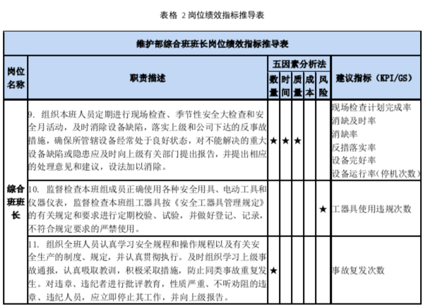 大多數(shù)情況下,崗位職責(zé)并不能直接生成績效指標(biāo),而需要借助一定的方法進(jìn)行分解和轉(zhuǎn)化。對(duì)于崗位指標(biāo)提煉方法有很多種,常見的有直接尋找法,通常是指依據(jù)第一反映就能察覺的衡量指標(biāo),關(guān)鍵事件法/PDCD循環(huán)法,沒有深入分解企業(yè)業(yè)務(wù)模式和崗位工作特點(diǎn),常常以偏概全,不能有效把握考核重點(diǎn)。