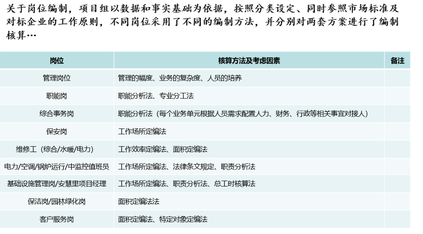 結(jié)合部門定位,設(shè)置崗位,并采用多種方法完成人員編制的測算。