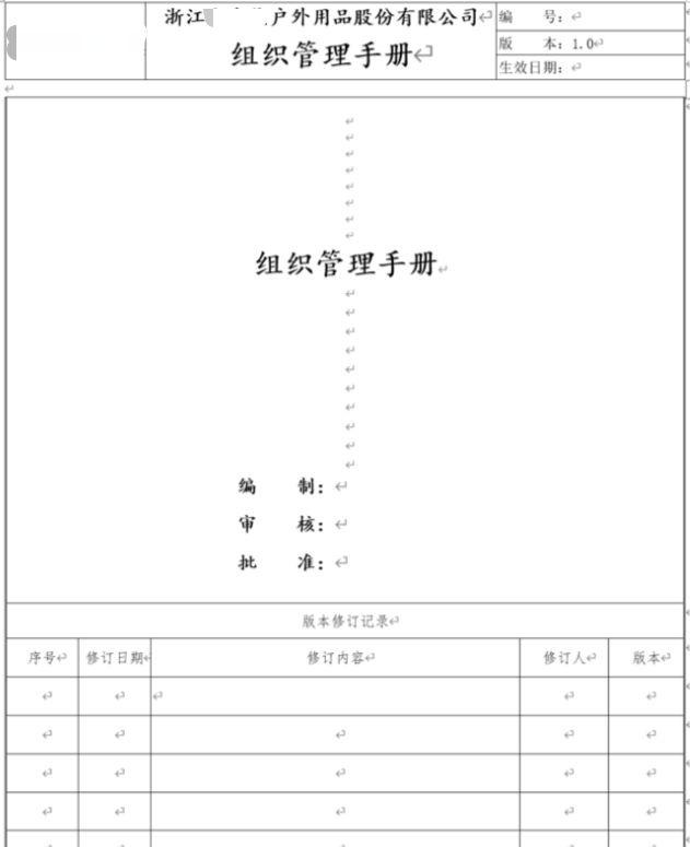 匯編形成《浙江公司戶外用品股份有限公司組織管理手冊》一份。