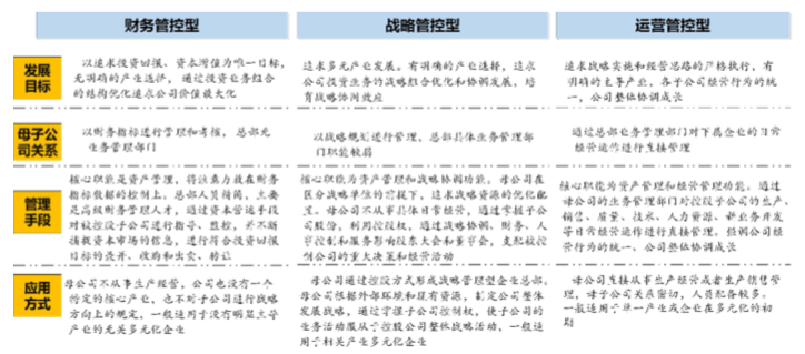 澄清組織管控模式,梳理組織功能定位,考慮到母子公司管控模式,明確實(shí)業(yè)公司對(duì)實(shí)業(yè)公司發(fā)展基金與其他投資公司、項(xiàng)目運(yùn)營公司之間管控模式的差異。不同的母子公司管控模式,在發(fā)展目標(biāo)、母子公司關(guān)系、管理手段、應(yīng)用方式上存在較大差異。