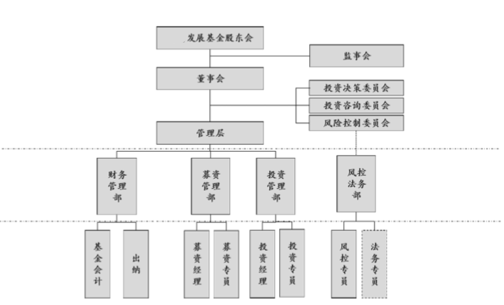 組織結(jié)構(gòu)設(shè)計(jì)以業(yè)務(wù)流程為主要思路進(jìn)行設(shè)計(jì),加強(qiáng)前臺(tái)“募、投、管、退”專業(yè)化, 中臺(tái)風(fēng)險(xiǎn)管控規(guī)范化及后臺(tái)服務(wù)支持標(biāo)準(zhǔn)化的能力建設(shè)。