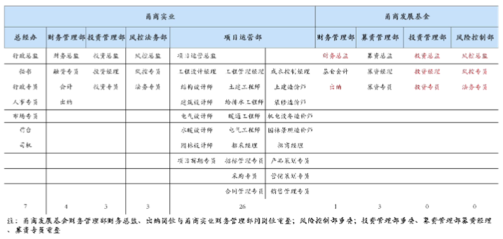 遠(yuǎn)期業(yè)務(wù)特點(diǎn):未來3-5年后,公司投資業(yè)務(wù)大幅增加,各投資子公司對(duì)后臺(tái)支持需求增加,公司增設(shè)信息技術(shù)部、資產(chǎn)管理部、審計(jì)監(jiān)察部,屆時(shí),各業(yè)務(wù)部門專業(yè)化程度更高,但單個(gè)部門的資源整合能力有可能不足。為有效支持前臺(tái)部門工作,公司可集中力量整合基金產(chǎn)業(yè)鏈的相關(guān)資源,更好服務(wù)前臺(tái)部門。例如,設(shè)置相關(guān)業(yè)務(wù)管理部,為前臺(tái)業(yè)務(wù)部門提供平臺(tái)支持。