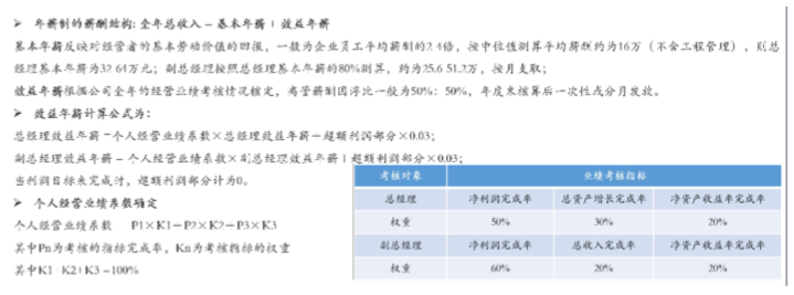 并對(duì)管理層薪酬方案建議。總經(jīng)理、副總經(jīng)理擔(dān)負(fù)著實(shí)現(xiàn)公司整體業(yè)績的責(zé)任。根據(jù)現(xiàn)代企業(yè)制度的要求,結(jié)合國家相關(guān)政策和公司運(yùn)行特點(diǎn)和實(shí)際情況,對(duì)總經(jīng)理、副總經(jīng)理的薪酬采用以與企業(yè)整體經(jīng)營業(yè)績相掛鉤的年薪制。