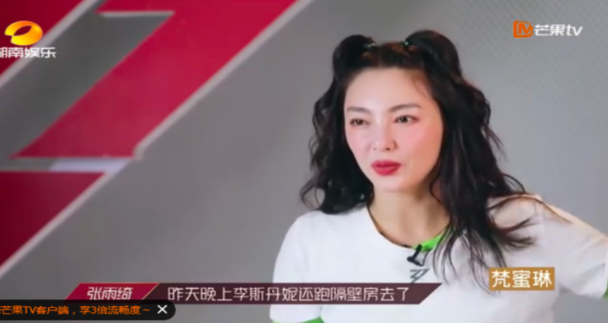 情景7:某次采訪中,張雨綺指出李斯丹妮應(yīng)該多花點(diǎn)時(shí)間在自己的團(tuán)隊(duì)上,大家多溝通磨合。藍(lán)盈瑩想讓李斯丹妮過(guò)去幫忙教舞蹈,張雨綺直接拒絕,說(shuō)自己團(tuán)還沒(méi)有練習(xí)到位,還是一塌糊涂。