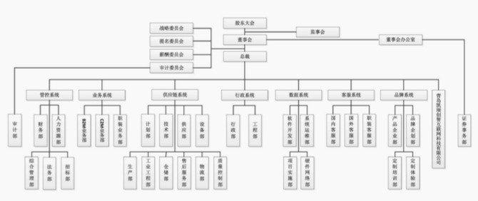 酷特智能組織機構(gòu)中主要部門的功能定位(表2:酷特智能主要部門功能定位):