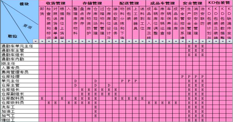 采用DPE矩陣工具將部門職能、任務(wù)分解到崗位。