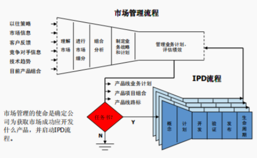 IPD流程與前序兩個(gè)流程緊密相關(guān):需求管理流程與市場(chǎng)管理流程。