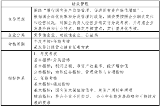 5、《中央企業(yè)負(fù)責(zé)人經(jīng)營(yíng)業(yè)績(jī)考核辦法》(2016年12月8日國(guó)資委令第33號(hào)),從考核導(dǎo)向、分類考核、目標(biāo)管理、考核實(shí)施、獎(jiǎng)懲等幾個(gè)方面對(duì)中央企業(yè)負(fù)責(zé)人經(jīng)營(yíng)業(yè)績(jī)考核進(jìn)行了規(guī)定。