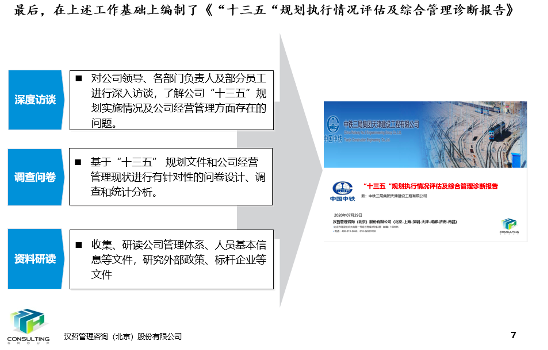 在對(duì)客戶中高層深度訪談、針對(duì)全員開展問卷調(diào)查和內(nèi)外部資料研讀的基礎(chǔ)上,編制了《“十三五”規(guī)劃執(zhí)行情況評(píng)估及綜合管理診斷報(bào)告》。