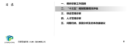 (一)“十三五”規(guī)劃執(zhí)行情況評(píng)估及綜合管理診斷