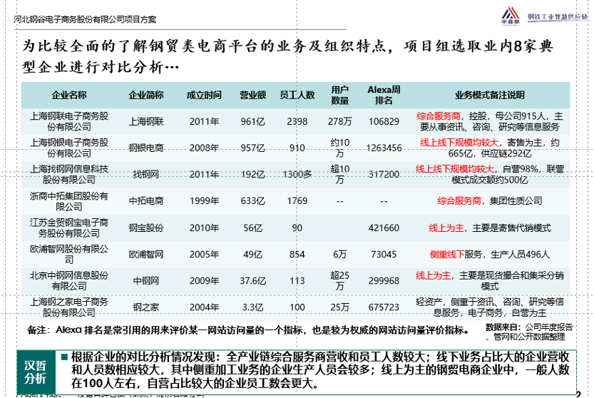 2、外部對(duì)標(biāo)。通過與目前發(fā)展較為成熟大宗商品電商平臺(tái)對(duì)標(biāo),探究其組織發(fā)展、部門崗位設(shè)置、各部門人員結(jié)構(gòu)比例等規(guī)律,設(shè)計(jì)鋼谷的組織架構(gòu)。