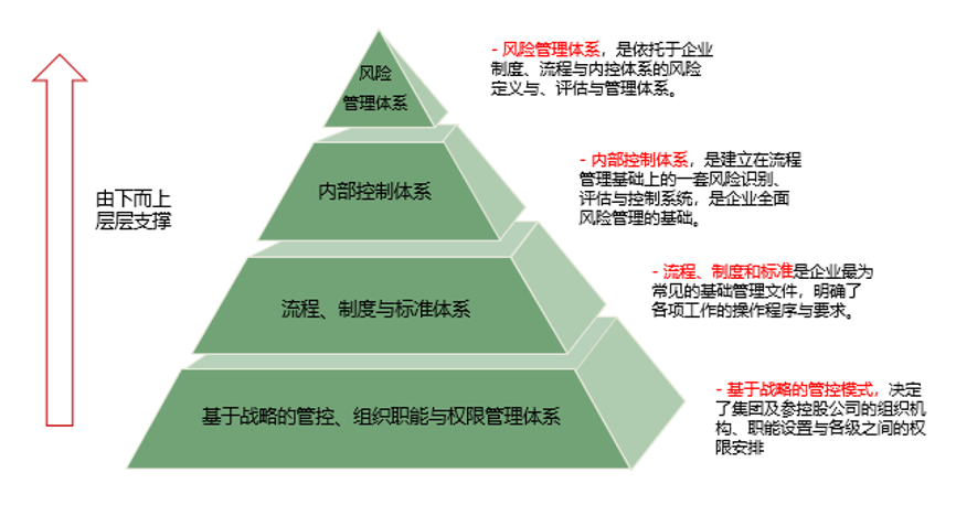 2、基于漢哲多年來開展管控、內(nèi)控及風(fēng)險管理的經(jīng)驗,建立企業(yè)全面風(fēng)險管理體系應(yīng)包含以下四個層次: