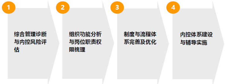 4、基于以上分析,本次內(nèi)控體系建設(shè)以滿足外部監(jiān)管要求為基礎(chǔ),以提升內(nèi)部管理效率和效果為目標(biāo),兼顧風(fēng)險和效率,充分吸收借鑒其它企業(yè)先進(jìn)實踐,立足于企業(yè)實際,系統(tǒng)的建立內(nèi)部控制體系,項目按照如下四個模塊設(shè)計與組織實施: