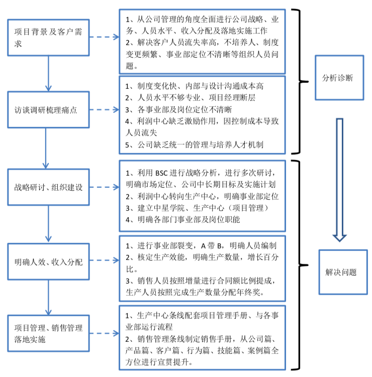 項(xiàng)目按照戰(zhàn)略及組織調(diào)整已經(jīng)完成落地,戰(zhàn)略中知識(shí)管理、培訓(xùn)工作、股權(quán)激勵(lì)也已經(jīng)成功續(xù)單。
