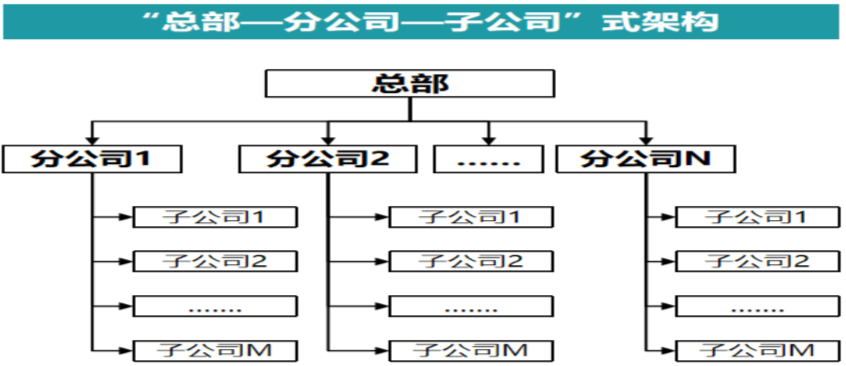 該組織架構(gòu)的總部和下屬成員企業(yè)以“母子公司”形式存在,均為獨立法人;在中間設(shè)置區(qū)域分公司,為非獨立法人,與總部形成“總分”架構(gòu);區(qū)域分公司作為區(qū)域內(nèi)成員公司一體化集中管理平臺,最終在集團(tuán)整體管控運作上表現(xiàn)為總控分、分控子。