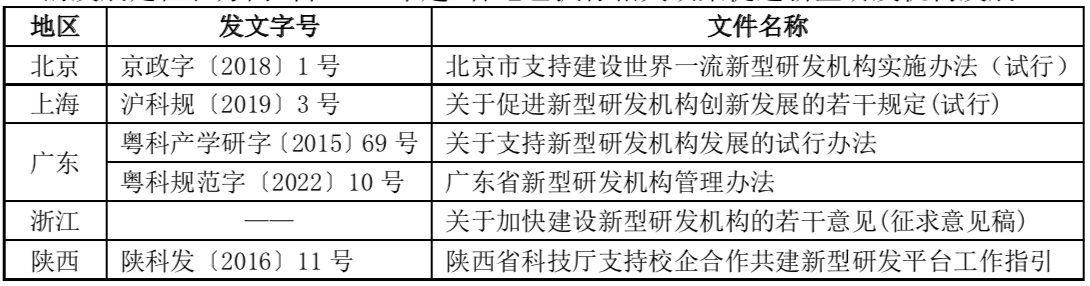 表:部分地區(qū)新型研發(fā)機構相關政策