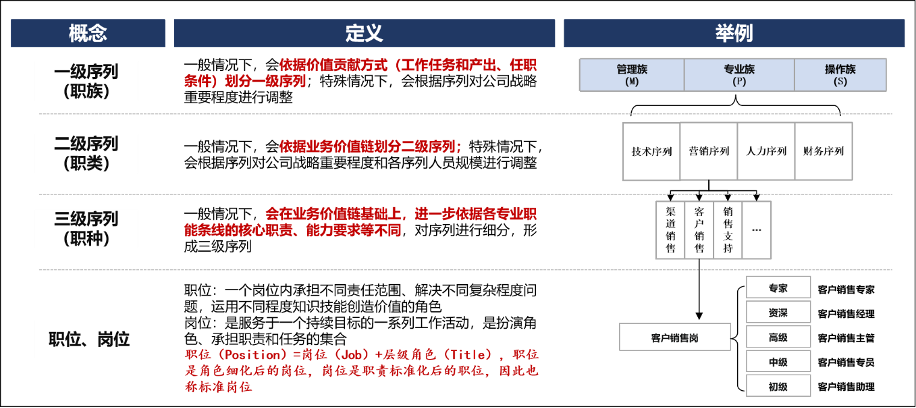 1、在一級序列劃分中,項(xiàng)目組進(jìn)行了外部對標(biāo)研究,并結(jié)合集團(tuán)不同事業(yè)群的戰(zhàn)略需求進(jìn)行了差異化設(shè)計(jì)和定義。