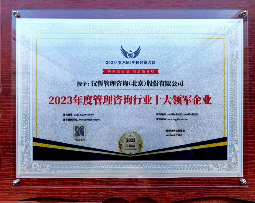 作為中國管理咨詢行業(yè)的領軍企業(yè)之一,漢哲管理咨詢(北京)股份有限公司受邀參與了本次大會并榮獲“2023年度管理咨詢行業(yè)十大領軍企業(yè)”稱號。