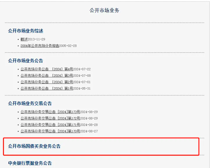 8月28日,中國人民銀行官網(wǎng)“公開市場業(yè)務(wù)”專題頁面上線“公開市場國債買賣業(yè)務(wù)公告”欄目。此次在官網(wǎng)欄目更新,顯示央行已為公開市場國債買賣業(yè)務(wù)做好準(zhǔn)備,再次釋放其將在公開市場開展國債買賣操作的信號(hào)。