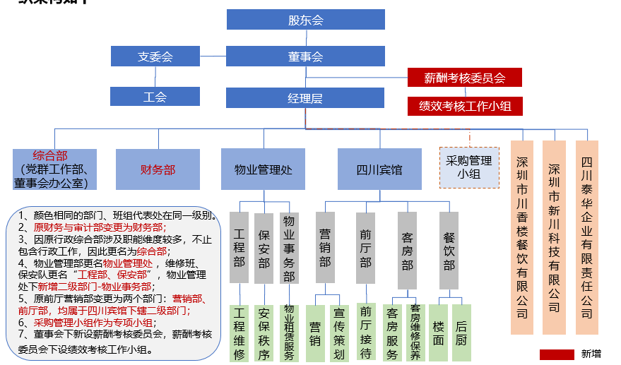 參考中山溫泉、東戴河合成大酒店、深圳天健置業(yè)等外部標(biāo)桿,結(jié)合公司業(yè)務(wù)價(jià)值鏈優(yōu)化公司的組織架構(gòu)。