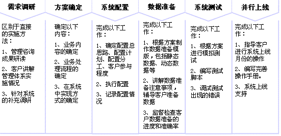 軟件選定之后,就要進(jìn)入實(shí)施階段。軟件廠商各有自己的實(shí)施方法論,但基本都按照下圖所示開展。