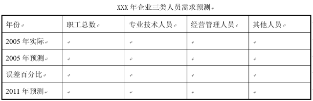對(duì)于人員總量預(yù)測(cè),可以根據(jù)下表構(gòu)建誤差分析模型進(jìn)行預(yù)測(cè):