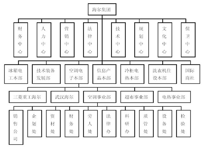 根據(jù)國(guó)際化的發(fā)展思路,海爾集團(tuán)對(duì)原來(lái)的事業(yè)本部制組織機(jī)構(gòu)進(jìn)行了戰(zhàn)略性調(diào)整,把原來(lái)分屬于每個(gè)事業(yè)部的財(cái)務(wù)、采購(gòu)、銷(xiāo)售業(yè)務(wù)全部分離出來(lái),整合成獨(dú)立經(jīng)營(yíng)的商流推進(jìn)本部、物流推進(jìn)本部、資金流推進(jìn)本部,實(shí)行全集團(tuán)范圍內(nèi)統(tǒng)一營(yíng)銷(xiāo)、統(tǒng)一采購(gòu)、統(tǒng)一結(jié)算;把原來(lái)的職能管理資源如人力資源開(kāi)發(fā)、技術(shù)質(zhì)量管理、信息管理、設(shè)備管理、法律、保衛(wèi)等進(jìn)行整合,把上述職能部門(mén)從各個(gè)事業(yè)本部分離出來(lái),以集團(tuán)的職能中心為主體,注冊(cè)成立獨(dú)立經(jīng)營(yíng)的服務(wù)公司;最后,把這些專(zhuān)業(yè)化的“事業(yè)體”通過(guò)“市場(chǎng)鏈”連接起來(lái),設(shè)計(jì)索酬、索賠、跳閘標(biāo)準(zhǔn)。