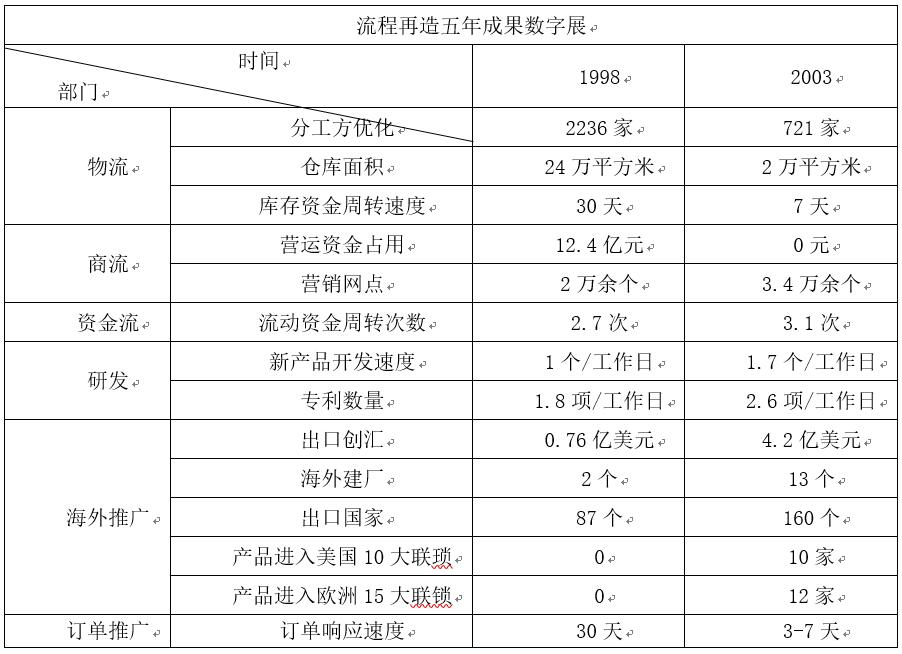表1:海爾業(yè)務(wù)流程再造的效果