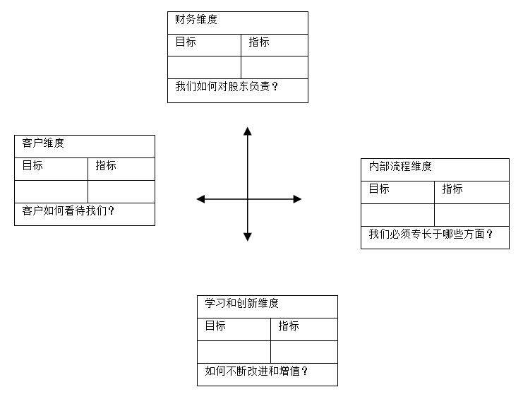 平衡計(jì)分卡是卡普蘭和諾頓在總結(jié)了十二家大型單位的業(yè)績(jī)?cè)u(píng)價(jià)體系的成功經(jīng)驗(yàn)的基礎(chǔ)上提出的。平衡計(jì)分卡是一種戰(zhàn)略性人力資源管理思想和指導(dǎo)方法。平衡計(jì)分卡的倡導(dǎo)者認(rèn)為在制定單位發(fā)展戰(zhàn)略目標(biāo)時(shí),不能只考慮財(cái)務(wù)指標(biāo),而應(yīng)該考慮支撐單位財(cái)務(wù)指標(biāo)實(shí)現(xiàn)的其他方面:關(guān)注客戶(hù)、業(yè)務(wù)流程、學(xué)習(xí)與成長(zhǎng)等。由此,平衡計(jì)分卡考核指標(biāo)可以從多個(gè)維度構(gòu)建,但是較為普遍的是從財(cái)務(wù)維度、客戶(hù)維度、內(nèi)部流程維度、學(xué)習(xí)和創(chuàng)新維度進(jìn)行考慮。