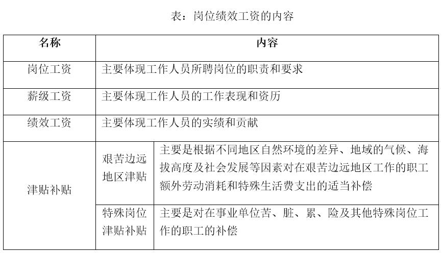 崗位工資主要體現(xiàn)工作人員所聘崗位的職責(zé)和要求。事業(yè)單位崗位分為專業(yè)技術(shù)崗位、管理崗位和工勤技能崗位。專業(yè)技術(shù)崗位設(shè)置13個(gè)等級(jí),管理崗位設(shè)置10個(gè)等級(jí),工勤技能崗位分為技術(shù)工崗位和普通工崗位,技術(shù)工崗位設(shè)置5個(gè)等級(jí),普通工崗位部分等級(jí)。不同等級(jí)的崗位對(duì)應(yīng)不同的工資標(biāo)準(zhǔn),工作人員按所聘崗位執(zhí)行相應(yīng)的崗位工資標(biāo)準(zhǔn)。
