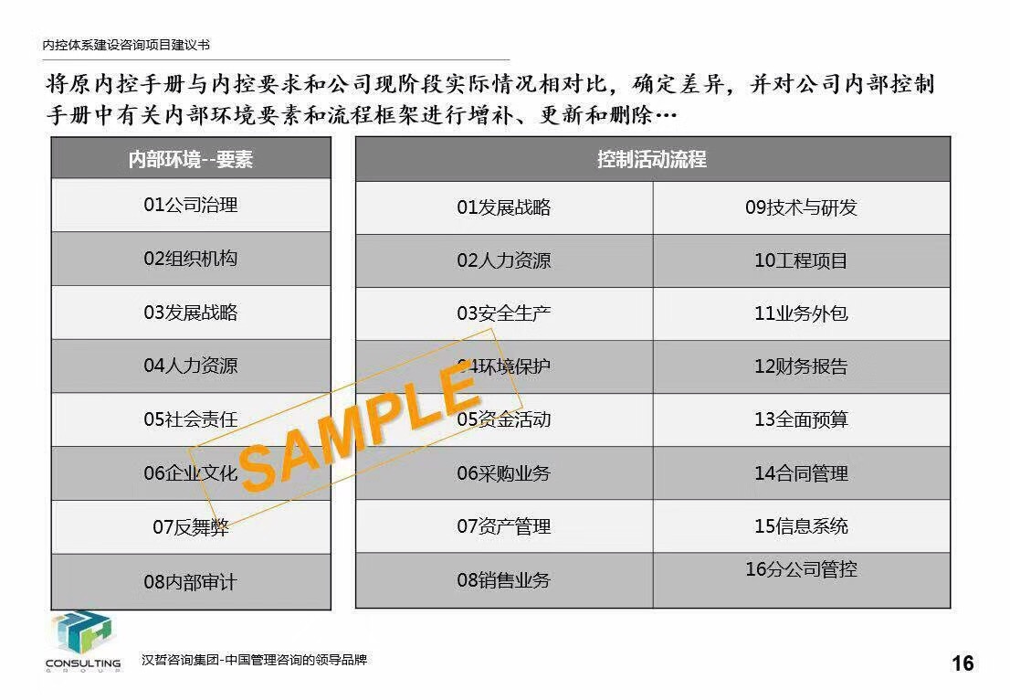 漢哲咨詢的內(nèi)控咨詢業(yè)務,最早起步于2001年,至今也有六年時間,期間,漢哲從國內(nèi)多家會計師事務所、內(nèi)控咨詢機構(gòu)陸續(xù)引進內(nèi)控咨詢的專業(yè)人才近二十名,結(jié)合漢哲自身的服務優(yōu)勢,初步搭建形成了具有漢哲特色的內(nèi)控咨詢技術與方法論體系,并先后完成了中國集郵總公司、國投大朝山水電、北京電控北電科林、呼和浩特城市發(fā)展集團、北京市水利規(guī)劃設計院、遼寧曙光農(nóng)牧集團等企業(yè)的內(nèi)控體系建設與內(nèi)控評價工作。