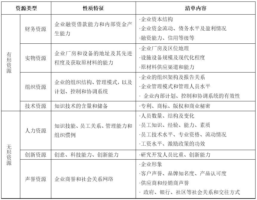對現(xiàn)有資源進行盤點是為了確定企業(yè)目前所擁有和可獲得的資源儲備情況。經(jīng)過分析,需要列出企業(yè)目前的資源清單,企業(yè)資源清單通常包括以下內(nèi)容: