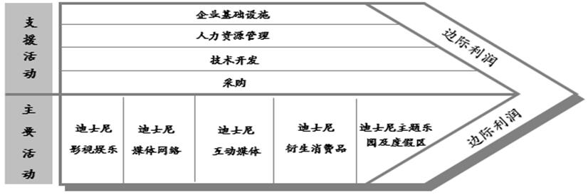 迪士尼公司成功地打造了一條“電影—電視電臺—衍生品—迪士尼樂園”的產(chǎn)業(yè)價值鏈,迪士尼影視娛樂、迪士尼媒體網(wǎng)絡(luò)、迪士尼互動媒體、迪士尼主題樂園度假區(qū)與迪士尼消費(fèi)品等部門分別負(fù)責(zé)產(chǎn)業(yè)鏈條不同環(huán)節(jié)的業(yè)務(wù)拓展和管理,形成了從唐老鴨、米老鼠等經(jīng)典影視節(jié)目到迪士尼游樂園、迪士尼系列圖書、迪士尼玩具、迪士尼服飾與箱包的、全球最長的版權(quán)價值鏈。
